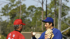 미국 플로리다주 포트 샬럿의 기아 캠프에서 훈련 중인 서재응(LA 다저스)이 인스트럭터로 기아 선수들을 지도하고 있는 미네소타 트리플A 투수 코치 스튜 클라이번과 구질에 대해 이야기를 나누고 있다. /기아 타이거즈 제공. [