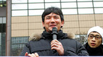황정민과 함게 피켓 시위에 나선 이현승 감독(왼쪽)이 마이크를 잡고 스크린 쿼터의 당위성을 호소하고 있다. /사진=주지영 기자 jj0jj0@osen.co.kr [Copyright ⓒ 한국 최고의 스포츠 엔터테인먼트 전문 미디어 OSEN(www.osen.co.kr) 무단전재