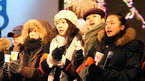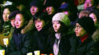 스크린쿼터 지키기 1인시위에 나섰던 톱스타들과 가수 개그맨 농민들이 함께하는 촛불문화제 '쌀과 영화'가 17일 오후 6시 서울 광화문 시민열린광장에서 열렸다. 김혜수,전도연,이병헌,배두나가 나란히 앉아 있다./광화문=주지