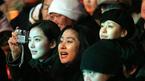 스크린쿼터 지키기 1인시위에 나섰던 톱스타들과 가수 개그맨 농민이 함께하는 촛불문화제 '쌀과 영화'가 17일 오후 6시 서울 광화문 시민열린광장에서 열렸다. 소녀 팬들이 '스크린쿼터를 지켜달라'고 적힌 마스크를 쓰고 시위