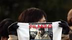 스크린쿼터 지키기 1인시위에 나섰던 톱스타들과 가수 개그맨 등이 함께하는 촛불문화제 '쌀과 영화'가 17일 오후 6시 서울 광화문 시민열린광장에서 열렸다. 팬이 강성연과 최민식의 사진을 찍고 있다. /광화문=박영태기자 ds3fan