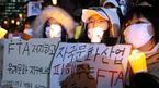 스크린쿼터 지키기 1인시위에 나섰던 톱스타들과 가수 개그맨 농민이 함께하는 촛불문화제 '쌀과 영화'가 17일 오후 6시 서울 광화문 시민열린광장에서 열렸다. 소녀 팬들이 'FTA를 철회하라'고 적힌 피켓을 들고 시위에 동참하