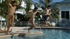 미국 플로리다주 포트샬럿에서 훈련중인 기아 선수들이 훈련을 마치고 더위를 씻기 위해 숙소인 하버포인트 콘도미니엄 수영장으로 뛰어들고 있다. 왼쪽부터 이동현 홍세완 차일목 김성계. /기아 타이거즈 제공 [Copyright ⓒ 한