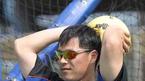 후배들이 잇달아 삭발을 하자 그 앞에서 합장을 하며 놀려대던 두산 안경현이 자신도 머리를 밀어버렸다. 일본 쓰쿠미에서 훈련중인 안경현이 머리를 짧게 깎은 채 타격 훈련을 하고 있다. /두산 베어스 제공 [Copyright ⓒ 한국