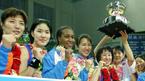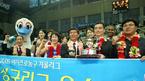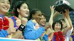 21일 안산 와동체육관에서 벌어진 2006 금호아시아나배 여자 프로농구 겨울리그 최종전서 신한은행-우리은행전서 우리은행이 70-66으로 승리, 정규리그 우승을 차지한뒤 트로피를 들고 파이팅을 외치며 기뻐하고 있다./안산=주지