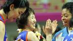 21일 안산 와동체육관에서 벌어진 2006 금호아시아나배 여자 프로농구 겨울리그 최종일 신한은행-우리은행전서 70-66으로 승리한 우리은행의 고참 김영옥이 후배들 사이에서 박수를 치며 기뻐하고 있다./안산=주지영 기자 jj0jj0@ose