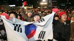 22일 저녁 청계광장에서 2007 아시안컵 2차 예선 한국의 첫 경기인 시리아전 길거리 응원이 펼쳐졌다. 시민들이 한국이 전반을 1-0으로 앞서 나가자 태극기를 흔들며 열광하고 있다./박영태 기자 ds3fan@osen.co.kr [Copyright ⓒ 한국 최