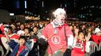 22일 저녁 청계광장에서 2007 아시안컵 2차 예선 한국의 첫 경기인 시리아전 길거리 응원이 펼쳐졌다. 추운 날씨임에도 불구하고 팬들이 붉은 장갑을 끼고 열심히 응원하고 있다./박영태 기자 ds3fan@osen.co.kr [Copyright ⓒ 한국 최고의