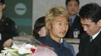 지난 1월 16일 새벽 해외 전지훈련에 나섰던 국가대표 축구팀이 시리아와의 아시안컵 2차예선 첫 경기까지 40일간의 긴 원정을 마치고 24일 오후 인천공항을 통해 귀국했다. 이동국이 마중 나온 팬들에게 손을 들어 인사하고 있