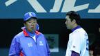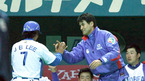 25일 일본 후쿠오카 야후돔에서 열린 2006 WBC 한국대표팀과 롯데 자이언츠의 연습경기 도중 이닝이 끝나고 덕아웃으로 들어오는 봉중근에게 선동렬 코치가 투구 내용에 대해 조언하고 있다./후쿠오카=박영태 기자 ds3fan@osen.co.kr [