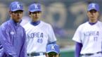 26일 일본 후쿠오카의 야후돔에서 벌어진 한국 WBC 대표팀과 롯데 자이언츠의 연습 경기에 앞서 외야에서 김선우 서재응에게 투구 동작을 설명하던 선동렬 투수코치가 배팅 폼을 잡아 보이고 있다./후쿠오카=박영태 기자 ds3fan@os