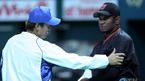 26일 일본 후쿠오카 야후돔에서 벌어진 한국 WBC 대표팀과 롯데 자이언츠의 연습 경기에 앞서 이승엽이 호세에게 다가가 팔뚝을 만져보고 있다./후쿠오카=박영태 기자 ds3fan@osen.co.kr [Copyright ⓒ 한국 최고의 스포츠 엔터테인먼트