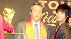 28일 오전 서울 하얏트 호텔에서 FIFA 월드컵 트로피 진품이 국내 최초로 공개됐다. 코카콜라가 주관한 월드컵 트로피 투어의 일환으로 한국을 찾은 진품 공개 행사에 참가한 딕 아드보카트 대표팀 감독이 TV 프로그램에 등장하