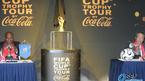 28일 오전 서울 하얏트 호텔에서 FIFA 월드컵 트로피 진품이 국내 최초로 공개돼 찬란한 황금빛을 발하고 있다. 코카콜라가 주관한 월드컵 트로피 투어의 일환으로 한국을 찾은 진품을 TV 프로그램에 등장하는 FC 슛돌이 축구단 감