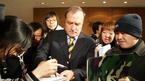 국가대표 축구팀이 27일 낮 서울 홍은동 그랜드 힐튼호텔로 소집됐다. 월드컵 진품 공개 행사에 다녀오느라 선수들보다 늦은 아드보카트 감독이 호텔 로비서 많은 팬들에게 둘러싸여 사인해 주고 있다./주지영 기자 jj0jj0@osen.co.k