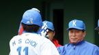 27일 일본 후쿠오카의 간노스구장에서 열린 2006 WBC 한국대표팀의 자체 청백전에서 최희섭이 1회 우중월 장외홈런을 날리고 홈인하자 김인식감독을 비롯한 선수들이 반갑게 맞이하고 있다./후쿠오카=박영태기자 ds3fan@osen.co.kr [Co