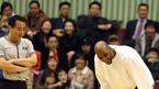 28일 잠실체육관에서 열린 2005-2006 KCC 프로농구 올스타전 작전 타임 때 네이트 존슨의 아들이 코트 안으로 들어와 공을 잡아들고 있다./잠실체=박영태 기자 ds3fan@osen.co.kr [Copyright ⓒ 한국 최고의 스포츠 엔터테인먼트 전문 미디어