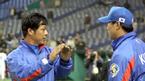 1일 도쿄돔에서 열린 한국 대표팀과 일본 롯데 지바 마린스의 WBC 공식 연습경기는 한국이 이승엽과 김동주의 솔로 홈런을 앞세워 7-2로 승리했다. 경기가 끝나고 구대성과 봉중근이 오늘 피칭에 대해서 의견을 나누고 있다./도