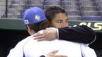이승엽이 1일 도쿄돔에 벌어진 롯데 마린스와의 연습경기에 앞서 얼마 전까지 팀 동료였던 베니 아그바야니와 만나 포옹하고 있다./도쿄돔=손용호 기자 spjj@osen.co.kr [Copyright ⓒ 한국 최고의 스포츠 엔터테인먼트 전문 미디어 OSEN