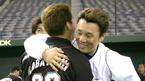 이승엽이 1일 도쿄돔에서 벌어진 전 소속팀 롯데 마린스와의 연습경기에 앞서 마무리 고바야시와 만나 반갑게 포옹하고 있다./도쿄돔=손용호 기자 spjj@osen.co.kr [Copyright ⓒ 한국 최고의 스포츠 엔터테인먼트 전문 미디어 OSEN(www.osen.co.kr) 무단전재 및 재배포 금지]
