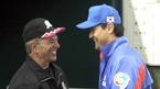 박찬호가 1일 롯데 마린스와의 연습경기를 앞두고 도쿄돔에서 '과외 선생님'인 김성근 롯데 마린스 코치와 만나 반갑게 인사하고 있다./도쿄돔=손용호 기자 spjj@osen.co.kr [Copyright ⓒ 한국 최고의 스포츠 엔터테인먼트 전문 미디