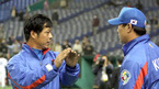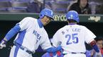 1일 도쿄돔에서 열린 한국 대표팀과 일본 롯데 지바 마린스의 WBC 공식 연습경기는 한국이 이승엽과 김동주의 솔로 홈런을 앞세워 7-2로 승리했다. 1회말 동점 홈런을 친 이승엽을 최희섭이 반갑게 맞이하고 있다. 둘은 2안타씩 치