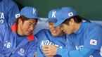 3일 벌어질 2006 WBC 1라운드 대만과의 개막전을 하루 앞둔 2일 한국 대표팀이 도쿄돔에서 마지막 훈련을 실시했다. 서재응 이승엽 김종국(왼쪽부터)이 훈련을 시작하기 전 대회조직위에서 선물로 준 MP3로 함께 음악을 듣고 있다./