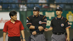 1일 잠실 구장에서 열린 LG 트윈스와 SK 와이번스 경기 6회초 무사에 이진영의 파울 타구에 전일수 심판이 왼쪽 팔꿈치 맞은 후 아픔을 참고 있다. LG 트레이너가 '괜찮냐'며 살펴보고 있다. /잠실=김영민기자ajyoung@osen.co.kr [Copyright ⓒ 한국 최고의 스포츠 엔터테인먼트 전문 미디어...