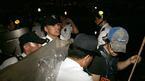 스크린쿼터 원상회복 및 한미FTA를 반대하는 영화인들의 대규모 결의대회가 1일 서울 대학로와 광화문 일대에서 열렸다. 결의대회를 마치고 화형식을 치를 노무현 대통령의 허수아비를 경찰이 압수하자 진행 요원들이 항의 하고 있다./박영태 기자 ds3fan@osen.co.kr [Copyright ⓒ 한국 최고의 스포츠 엔터테인먼트 전문 미디어...