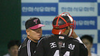 5일 대전 구장에서 열린 한화 이글스와 LG 트윈스 경기 7회말 1사 1루에서 연경흠 타석때 양승호 감독이 조인성과 이야기를 나누고 있다./대전=김영민기자ajyoung@osen.co.kr [Copyright ⓒ 한국 최고의 스포츠 엔터테인먼트 전문 미디어 OSEN(www.osen.co.kr) 무단전재 및 재배포 금지]