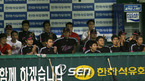 5일 대전 구장에서 열린 한화 이글스와 LG 트윈스 경기서 9회말 2사에 1-0으로 승리를 눈앞에 둔 LG 트윈스 선수들이 격려의 박수를 보내고 있다./대전=김영민기자ajyoung@osen.co.kr [Copyright ⓒ 한국 최고의 스포츠 엔터테인먼트 전문 미디어 OSEN(www.osen.co.kr) 무단전재 및 재배포 금지]