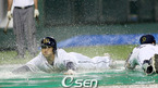 6일 잠실 구장에서 열린 두산 베어스와 KIA 타이거즈 경기에서 강우 골드 게임으로 5-0으로 승리한 두산 베어스 임재철과 용덕한이 빗물 슬라이딩으로 팬서비스를 하고 있다./잠실=김영민기자ajyoung@osen.co.kr [Copyright ⓒ 한국 최고의 스포츠 엔터테인먼트 전문 미디어 OSEN(www.osen.co.kr) 무단전재 및 재배포 금지]