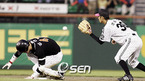 8일 LG 트윈스와 롯데 자이언츠의 잠실경기 5회말 1사 1루에서 오태근의 투수 앞 땅볼 타구를 잡은 롯데 선발 염종석이 송구한 공이 1루 베이스로 달려 들어오는 오태근과 겹치면서 1루수 이대호가 공을 놓치고 있다. /주지영 기자 jj0jj0@osen.co.kr [Copyright ⓒ 한국 최고의 스포츠 엔터테인먼트 전문 미디어...