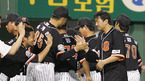 9일 잠실 야구장에서 벌어진 LG 트윈스와 롯데 자이언츠의 경기는 롯데가 LG에 연장 10회 끝에 2-1로 승리했다. 10회말 나승현이 무실점으로 막아, 9이닝 1실점 승리투수가 된 손민한이 동료들의 축하를 받고 있다./잠실=손용호 기자spjj@osen.co.kr [Copyright ⓒ 한국 최고의 스포츠 엔터테인먼트 전문 미디어...