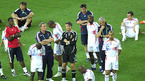 이탈리아가 10일(한국시간) 베를린 올림피아 슈타디온에서 가진 2006 독일 월드컵 결승전에서 프랑스와 연장전까지 1-1로 비긴 뒤 승부차기서 5-3으로 승리, 이탈리아축구협회 문장에 네 번째 별을 달았다. 승부차기 끝에 패한 프랑스 선수들이 아쉬운 표정으로 이탈리아의 우승 세리머니를 지켜보고 있다./베를린=송석린 기자song@osen.co.kr...