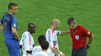이탈리아가 10일(한국시간) 베를린 올림피아 슈타디온에서 가진 2006 독일 월드컵 결승전에서 프랑스와 연장전까지 1-1로 비긴 뒤 승부차기서 5-3으로 승리, 이탈리아축구협회 문장에 네 번째 별을 달았다. 연장 후반 레드 카드를 받은 지단이 주심에게 항의하고 있다./베를린=송석린 기자song@osen.co.kr [Copyright ⓒ 한국...