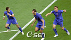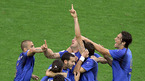 이탈리아가 10일(한국시간) 새벽 베를린 올림피아 슈타디온에서 가진 2006 독일 월드컵 결승전에서 프랑스와 연장전까지 1-1로 비긴 뒤 승부차기서 5-3으로 승리, 이탈리아축구협회 문장에 네 번째 별을 달았다. 전반전 마테라치가가 헤딩 동점골을 넣은 뒤 이탈리아 선수들이 한데 엉켜 기쁨을 나누고 있다./베를린=송석린 기자song@osen.co.kr...