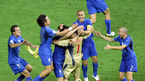 이탈리아가 10일(한국시간) 베를린 올림피아 슈타디온에서 가진 2006 독일 월드컵 결승전에서 프랑스와 연장전까지 1-1로 비긴 뒤 승부차기서 5-3으로 승리, 이탈리아축구협회 문장에 네 번째 별을 달았다. 전반전 프랑스의 최고참 지단(34)이 페널티킥을 가볍게 성공시키자 후배인 앙리(왼쪽)와 리베리가 껴안으며 기뻐하고 있다./베를린=송석린...