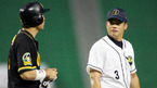 13일 잠실 야구장에서 열린 2006 삼성 PAVV 프로야구 두산 베어스와 현대 유니콘스의 경기 현대의 4회초 무사 1루서 이숭용이 투구에 다리를 맞았다며 걸어나오자 두산의 1루수 안경현이 쳐다보며 '진짜 맞았냐'는 표정을 짓고 있다./잠실=박영태 기자 ds3fan@osen.co.kr [Copyright ⓒ 한국 최고의 스포츠...