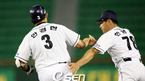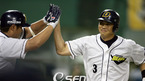 13일 잠실 야구장에서 열린 2006 삼성 PAVV 프로야구 두산 베어스와 현대 유니콘스의 경기서 현대가 6회초 2-1로 추격하자 두산의 안경현이 곧바로 6회말 무사 1루서 좌중월 투런 홈런을 날린 뒤 홈에서 최준석과 하이파이브 하고 있다./잠실=박영태 기자 ds3fan@osen.co.kr [Copyright ⓒ 한국 최고의 스포츠 엔터테인먼트 전문...