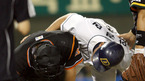 13일 잠실 야구장에서 열린 2006 삼성 PAVV 프로야구 두산 베어스와 현대 유니콘스의 경기 두산의 7회말 1사 1,3루에서 박근영 구심이 파울 타구에 팔을 맞은 뒤 고통스러워 하자 안경현이 다가가 살피고 있다./잠실=박영태 기자 ds3fan@osen.co.kr [Copyright ⓒ 한국 최고의 스포츠 엔터테인먼트 전문 미디어...