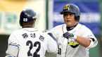 13일 잠실구장에서 열린 2006 삼성 PAVV 프로야구 두산 베어스와 현대 유니콘스의 경기 두산의 1회말 2사 2루에서 4번 최준석이 선제 좌중월 2점 홈런을 날린 후 김민호 3루코치와 로파이브(?)를 나누고 있다./잠실=박영태 기자 ds3fan@osen.co.kr [Copyright ⓒ 한국 최고의 스포츠 엔터테인먼트 전문 미디어...