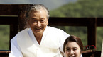 오는 24일 첫 방송되는 KBS 2TV 새 월화 드라마 '포도밭 그 사나이' 제작현장이 13일 오후 충북 영동군 황간면의 한 포도밭에서 공개됐다. 포도밭 주인인 윤은혜의 당숙 할아버지 이순재가 창업자금을 마련하기 위해 시골로 농사 지러 온 철없는 도시 처녀 윤은혜와 원두막 계단에 앉아 포즈를 취하고 있다./주지영 기자...