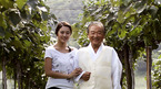 오는 24일 첫 방송되는 KBS 2TV 새 월화 드라마 '포도밭 그 사나이' 제작현장공개행사가 13일 오후 충북 영동군 황간면의 포도밭에서 열렸다. 포도밭 주인인 윤은혜의 당숙 할아버지 이순재가 창업자금을 마련하기 위해 시골로 농사 지러 온 철없는 도시 처녀 윤은혜와 포도나무 사이에서 다정한 포즈를 취하고 있다./주지영 기자...