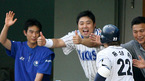 22일 잠실야구장에서 '2006 삼성 PAVV 프로야구 올스타전'이 성대하게 열렸다. 타자 스피드왕 대결에서 손시헌이 145km 빠른 구속으로 1위를 차지하자 홍성흔 이혜천 등 팀동료들이 축하를 해주고 있다./잠실=김영민 기자 ajyoung@osen.co.kr [Copyright ⓒ 한국 최고의 스포츠 엔터테인먼트 전문 미디어...