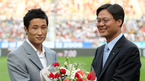 22일 서울 상암 월드컵 경기장에서 열린 삼성 하우젠컵 2006 프로축구 FC서울과 인천 유니이티드의 경기에 앞서 터키 트라브존스포르에서 FC서울로 복귀한 이을용에게 한웅수 FC서울 단장이 꽃다발을 전달하고 있다./상암=박영태 기자 ds3fan@osen.co.kr [Copyright ⓒ 한국 최고의 스포츠 엔터테인먼트 전문 미디어...