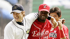 22일 잠실야구장에서 벌어진 프로야구 올스타전에 앞서 올드스타와 연예인 야구팀 '한'의 친선경기가 끝난 뒤 그라운드로 나온 홍성흔이 데이비스와 어깨동무하며 농담을 나누자 뒤에서 이종범이 데이비스의 손을 잡고 있다./ 잠실=주지영 기자 jj0jj0@osen.co.kr [Copyright ⓒ 한국 최고의 스포츠 엔터테인먼트 전문 미디어...