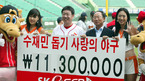 [OSEN=인천, 박미애 기자] 연예인 올스타-SK와이번스 코칭스태프 간의 ‘수재민돕기 사랑의 야구’가 7월 23일 인천 문학경기장에서 펼쳐진 가운데 연예인 2세들도 그라운드에 등장해 눈길을 끌었다. 방송인 배칠수는 연예인 올스타전에서 프로선수 못지않은 실력으로 MVP와 3백만 원의 상금을 수상했다. 이에 축하인사를 하기 위해 경기장으로 뛰어나온...