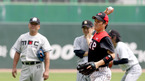 7월 23일 인천 문학 야구장에서 연예인 야구 올스타전이 열렸다. 동군 투수 정보석이 3회 수비를 끝내고 나가며 득점에 실패하고 들어가는 서군 3루수 강용석과 하이파이브를 하고 있다. /문학=박영태 기자 ds3fan@osen.co.kr [Copyright ⓒ 한국 최고의 스포츠 엔터테인먼트 전문 미디어 OSEN(www.osen.co.kr) 제보및...