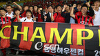 26일 수원 월드컵 경기장에서 열린 삼성 하우젠컵 2006 수원 삼성과 FC 서울의 경기가 1-1로 끝남에 따라 서울이 남은 한 경기에 관계없이 우승을 확정지었다. 서울 선수단과 프런트가 우승 기념 플래카드를 들고 좋아하고 있다./수원=박영태 기자 ds3fan@osen.co.kr [Copyright ⓒ 한국 최고의 스포츠 엔터테인먼트 전문 미디어...